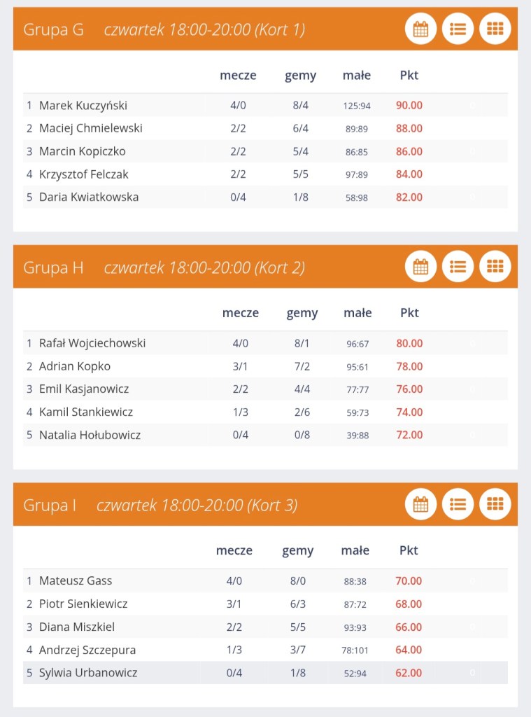 - Wojciechowski Rafał- czwartek 18:00